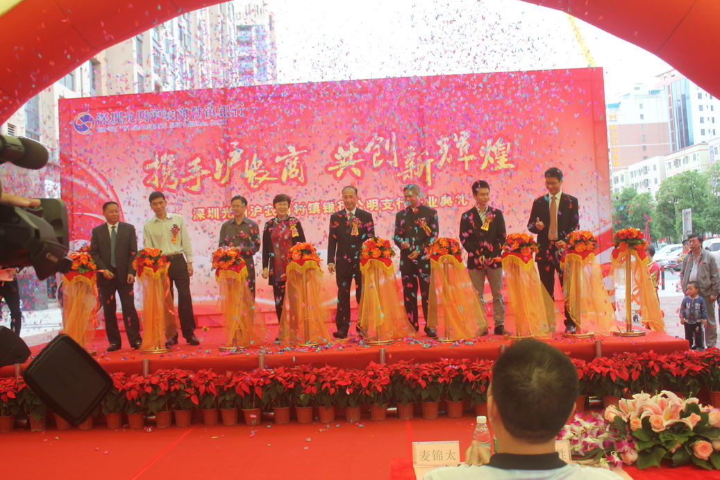 2016年4月12日,深圳光明沪农商村镇银行公明支行隆重开业!来自各股东单位和光明新区管委会、新区发财局、公明街道办事处、新区总工会、客户代表等单位领导参加了开业典礼。